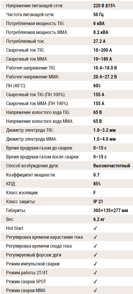 Аппарат серии PRO TIG 200 P DSP (W212) позволяет производить качественную, комфортную аргонодуговую (TIG) и ручную дуговую сварку покрытым электродом (MMA). В режиме TIG сварки возможно выполнение точечной* и импульсной сварки.