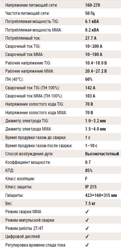 Аппарат серии PRO TIG 200 DSP (W207) позволяет производить качественную, комфортную аргонодуговую сварку (TIG) и ручную дуговую сварку покрытым электродом (MMA).